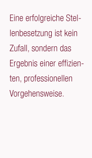 Als externe Personalberatung finden wir für Sie den richtigen Mitarbeiter. Wir haben uns spezialisiert auf die Personalauswahl von kaufmännischen Führungskräften und Fachpersonal sowie Manager im technischen Bereich. Damit wir Ihnen den bestgeeigneten Kandidaten präsentieren können, möchten wir Ihr Unternehmen und Ihre Mitarbeiter persönlich kennen lernen. Besonders wichtig ist die Einbeziehung der unmittelbaren Mitarbeiter bei der Neubesetzung - ein nicht zu unterschätzender Faktor! Klare Auftragsklärung und zuverlässige Projektabwicklung sind für uns selbstverständlich. Unsere Beratungsleistung umfasst: